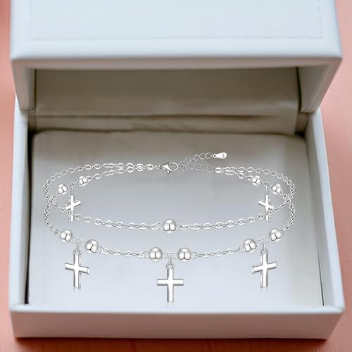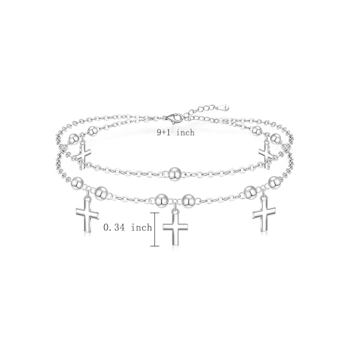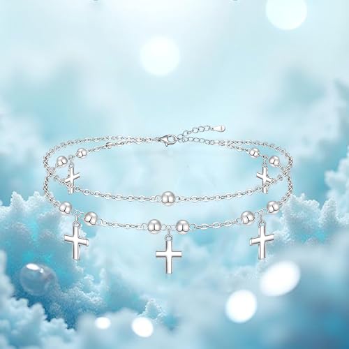 Cross Anklets for Women Cross Anklet Sterling Silver Beaded Multilayer Ankle Bracelets Dainty Layering Adjustable Chain Charm Jewelry Mothers Day Gifts