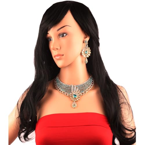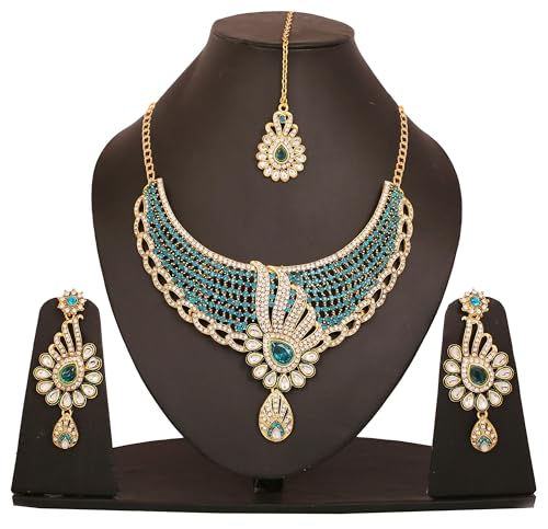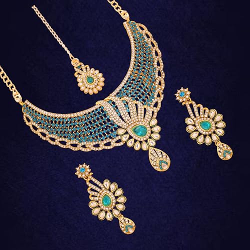 Be the first to review “Indian Hollywood Fashion Handcrafted White Or Blue Rhinestone Traditional Designer Jewelry Necklace Set In Blue Tone For Women.”